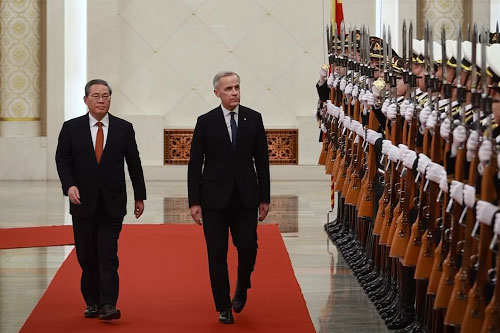 今日(1月15日)下午,國務院總理李強在北京人民大會堂與訪華的加拿大總理卡尼會談。