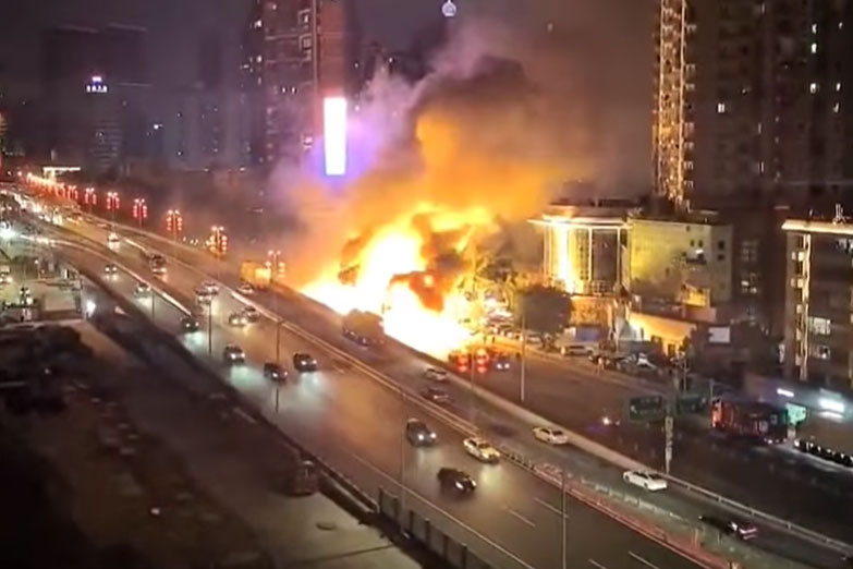 深圳羅湖區應急管理局發布,指晚上7時32分,羅湖區沿河路一輛運送活海鮮的貨櫃車起火,車上一氧氣瓶爆裂。