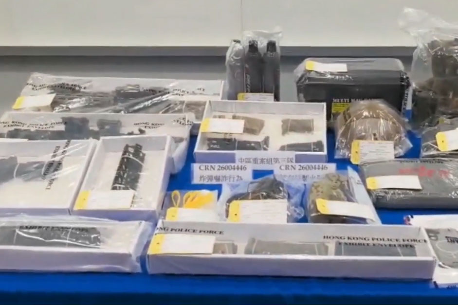 警方亦在被捕人家中,檢獲仿製槍械零部件,包括彈匣、槍管和塑膠子彈等,同時檢獲戰術頭盔、背心和腰帶。