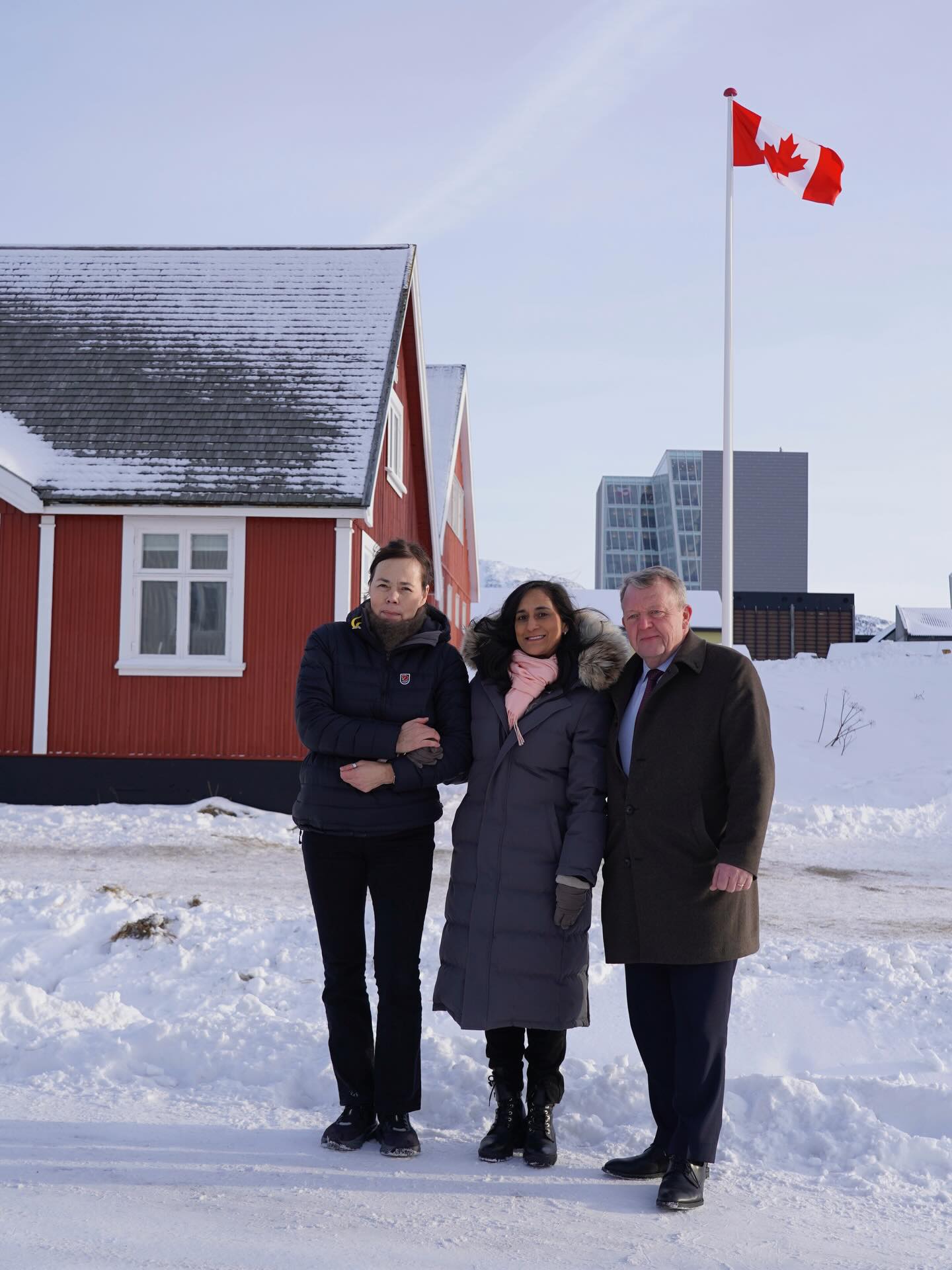 格陵蘭外長莫茨費爾特(圖左)也與拉斯穆森共同出席記者會,她表示樂見各方直接對話,並提到會談氣氛客氣有禮。