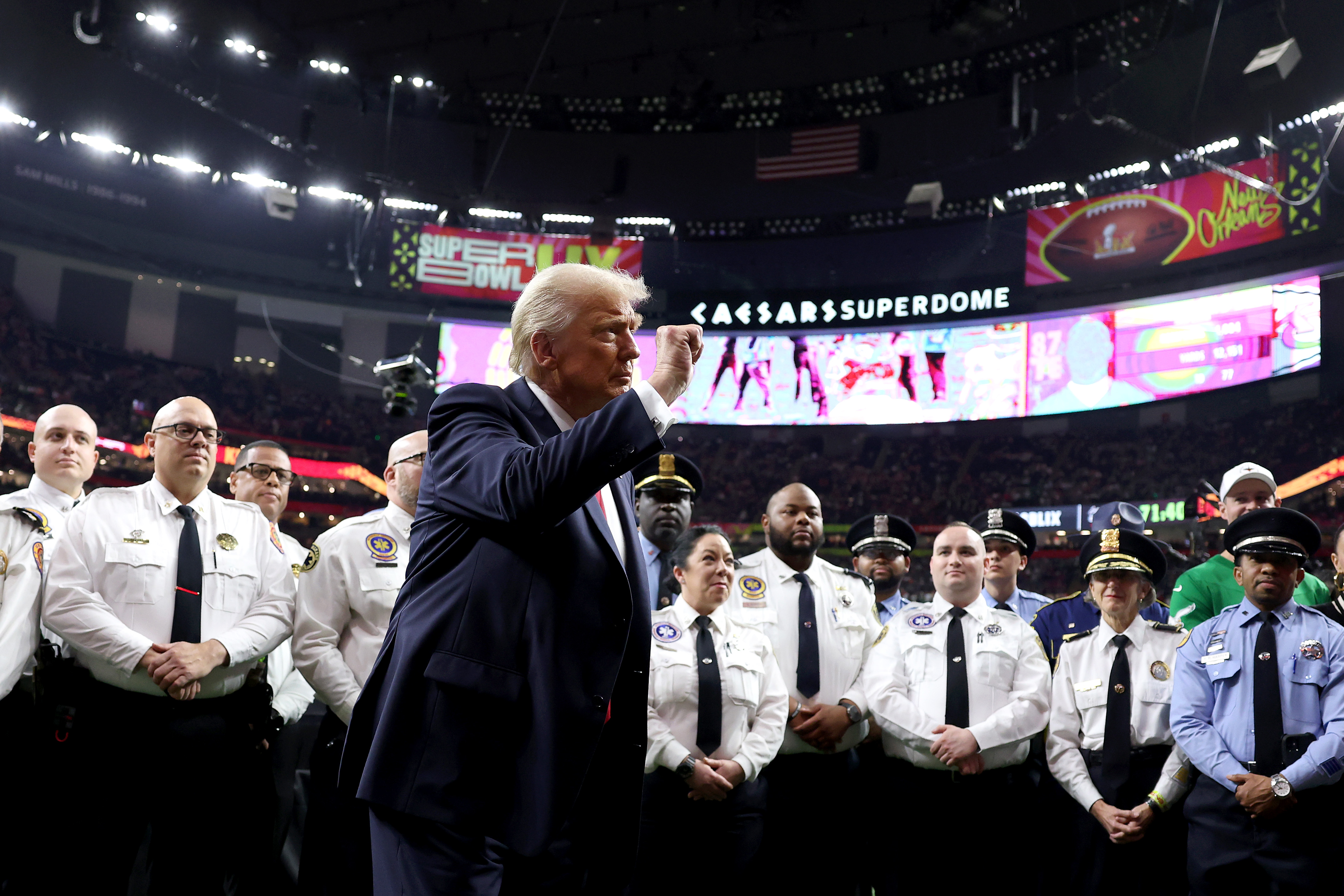 賽事於新奧爾良的凱撒超級巨蛋舉行,由肯薩斯酋長對費城老鷹。特朗普現身觀戰,在旁還有她的女兒伊凡卡。