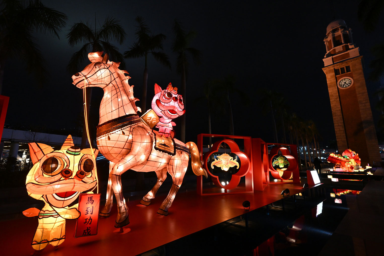 由非遺辦事處策劃、資深紮作師傅冒卓祺製作的《駿馬迎春 非遺呈祥》花燈,以駿馬、蝠鼠和醒獅為主題;另一綵燈《獅躍新春 馬到功成》則由資深紮作師傅許嘉雄製作,融入香港中式長衫、全盒、金錢及大吉等元素。