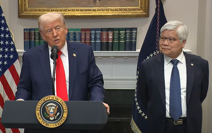 特朗普在台積電董事長兼總裁魏哲家陪同下,在白宮會見傳媒。特朗普表示,台積電大部分資金將投入在亞利桑那州,並將創造數以千計的高薪工作機會。特朗普說,台積電將在現有約650億美元投資承諾以外新增投資,建造5座最尖端的生產設施。