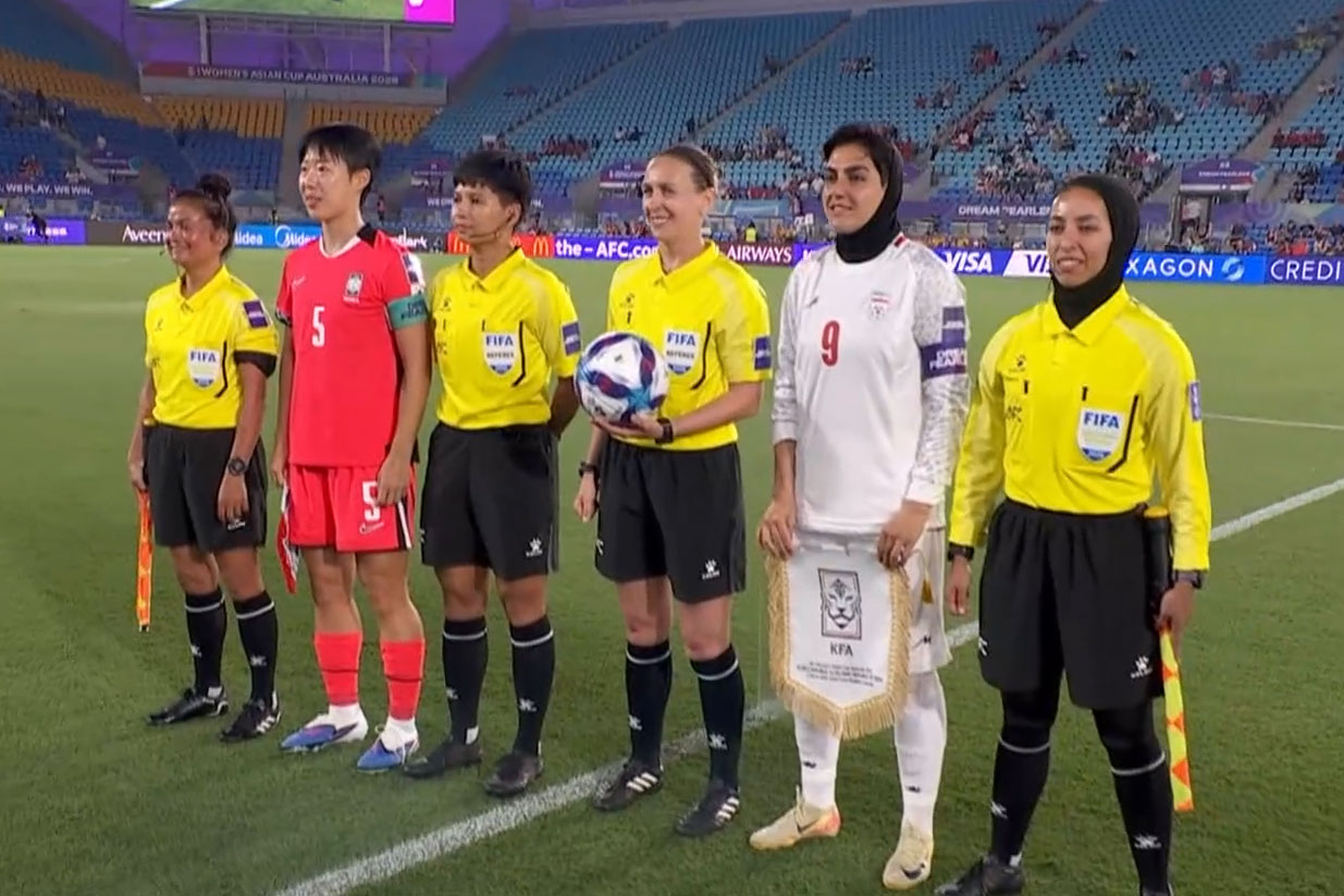 伊朗女足球員在首場分組賽開賽前,奏出伊朗國歌時保持沉默,雖未對外說明原因,但此一舉動被部分伊朗國內強硬派人士解讀為叛國。
