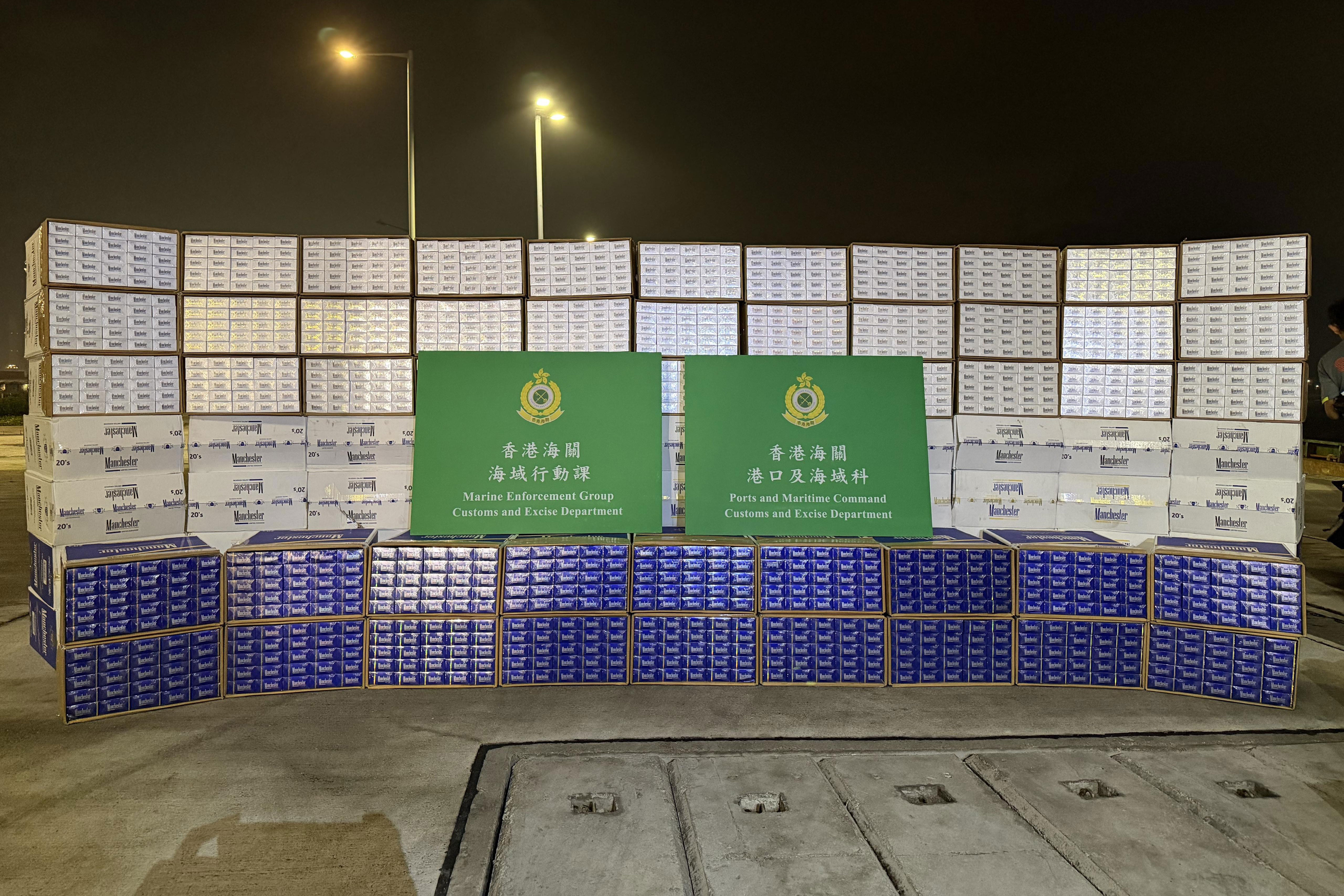 香港海關聯同水警及內地執法部門昨日(3月27日)進行反走私聯合行動,在香港東南面水域偵破一宗涉嫌利用內河船走私的案件,檢獲約2000萬支懷疑私煙,估計市值約9200萬元,應課稅值約6800萬元。