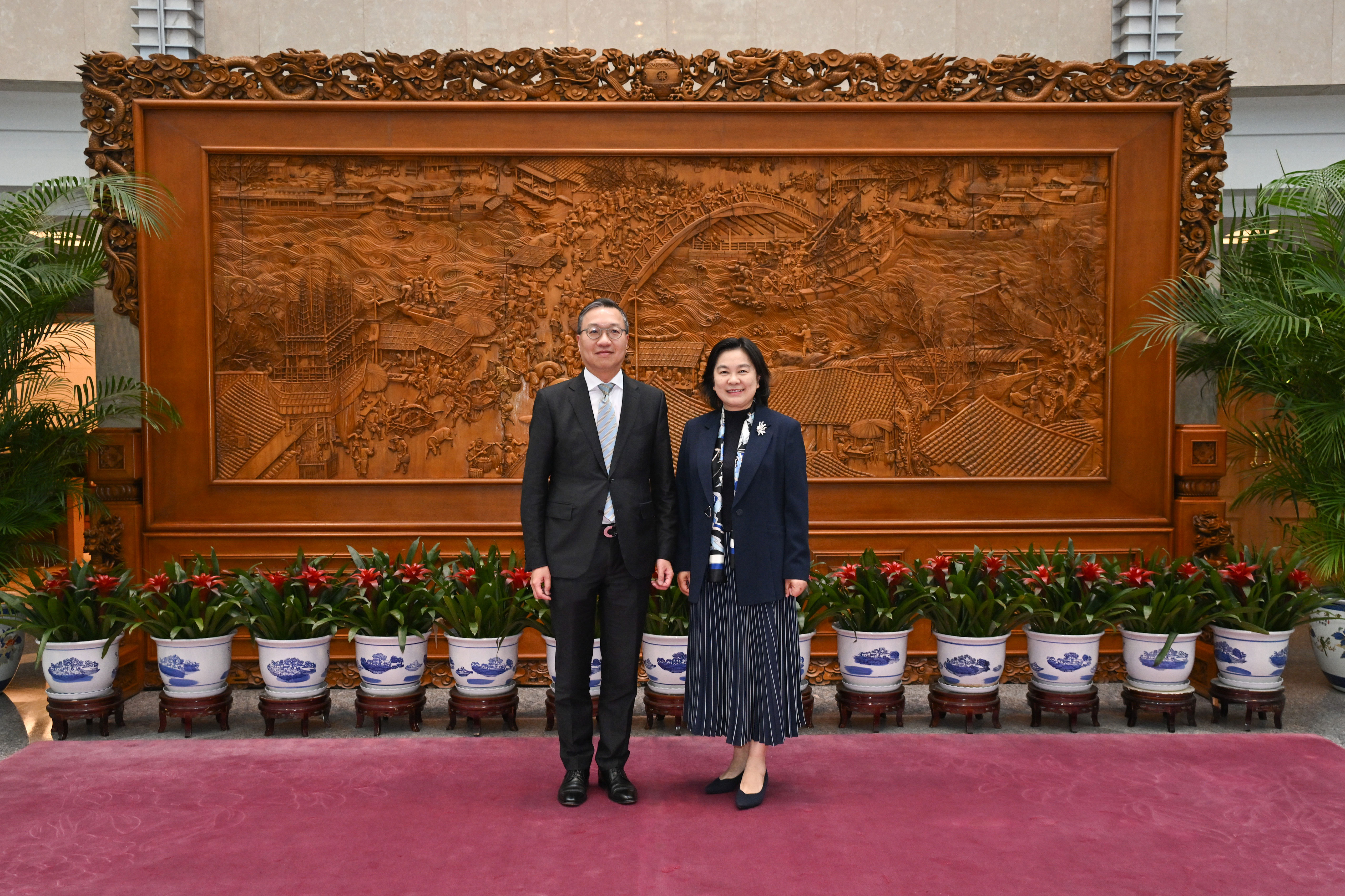 在與外交部副部長華春瑩的會議上,雙方就支持香港特別行政區政府及律政司與國際法律機構合作,助力提升香港國際法律及爭議解決服務中心地位等交流意見。