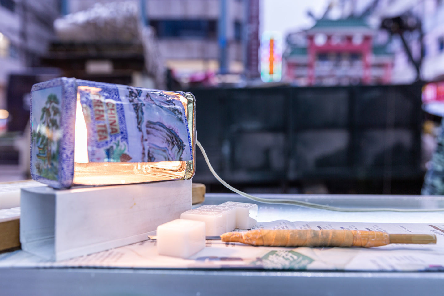 「好的麻雀,拿在手上有質感和重量;而我只會雕靚料。」景叔口中的靚料,乃來自德國的阿加力(acrylic),夠實淨而且質素好。「冬季,還要以茶葉罐自製的鎢絲燈盒,一方面作照明用,另一方面待罐子發熱後將麻雀放在上面,熱力令物料變軟,就會比較容易雕。」這些有趣的民間小智慧,往往只有上一輩才保持著活學活用;現在只講求方便的世代來說,這樣太浪費時間。