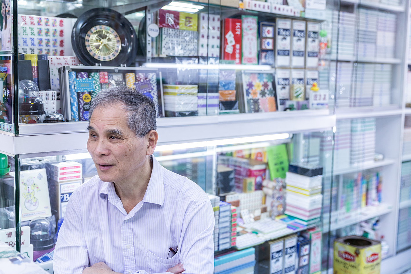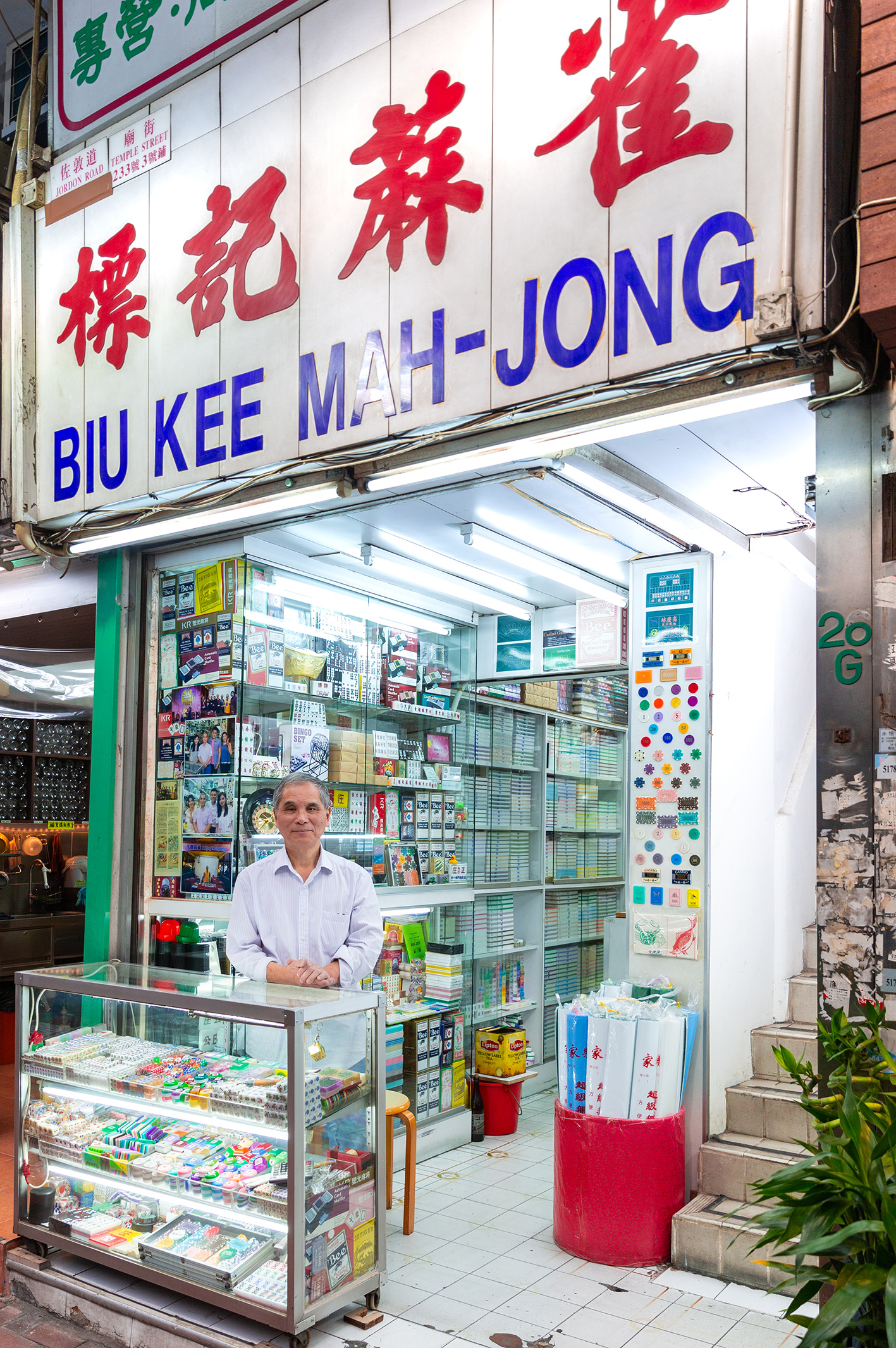 由上世紀起於佐敦開業的標記麻雀,經歷過多次搬遷,由廣東道地舖搬到佐敦道樓梯底,見證港人娛樂的變遷。「六七十年代是手雕麻雀的黃金時間。當年不似今日咁多嘢玩,公仔書、遊戲機、唱K、睇戲,去旅行......因此幾乎每個家庭都有一副麻雀;對不少人來說,這是唯一娛樂,尤其是家庭主婦。」景叔說,那時候佐敦的廣東道上有至少十家專門售賣麻雀和賭具的店舖;但時移世易,現時全港只剩下十幾間。