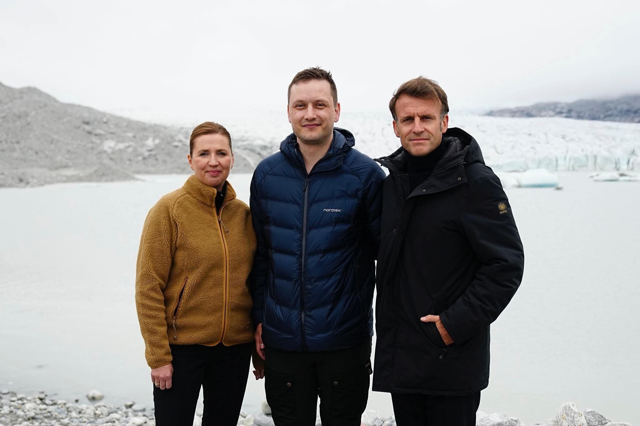 馬克龍與丹麥首相弗雷澤里克森,以及格陵蘭島自治政府總理尼爾森共同見記者。馬克龍稱格陵蘭正面臨掠奪者的野心威脅,他強調格陵蘭島是非賣品,不容奪取。