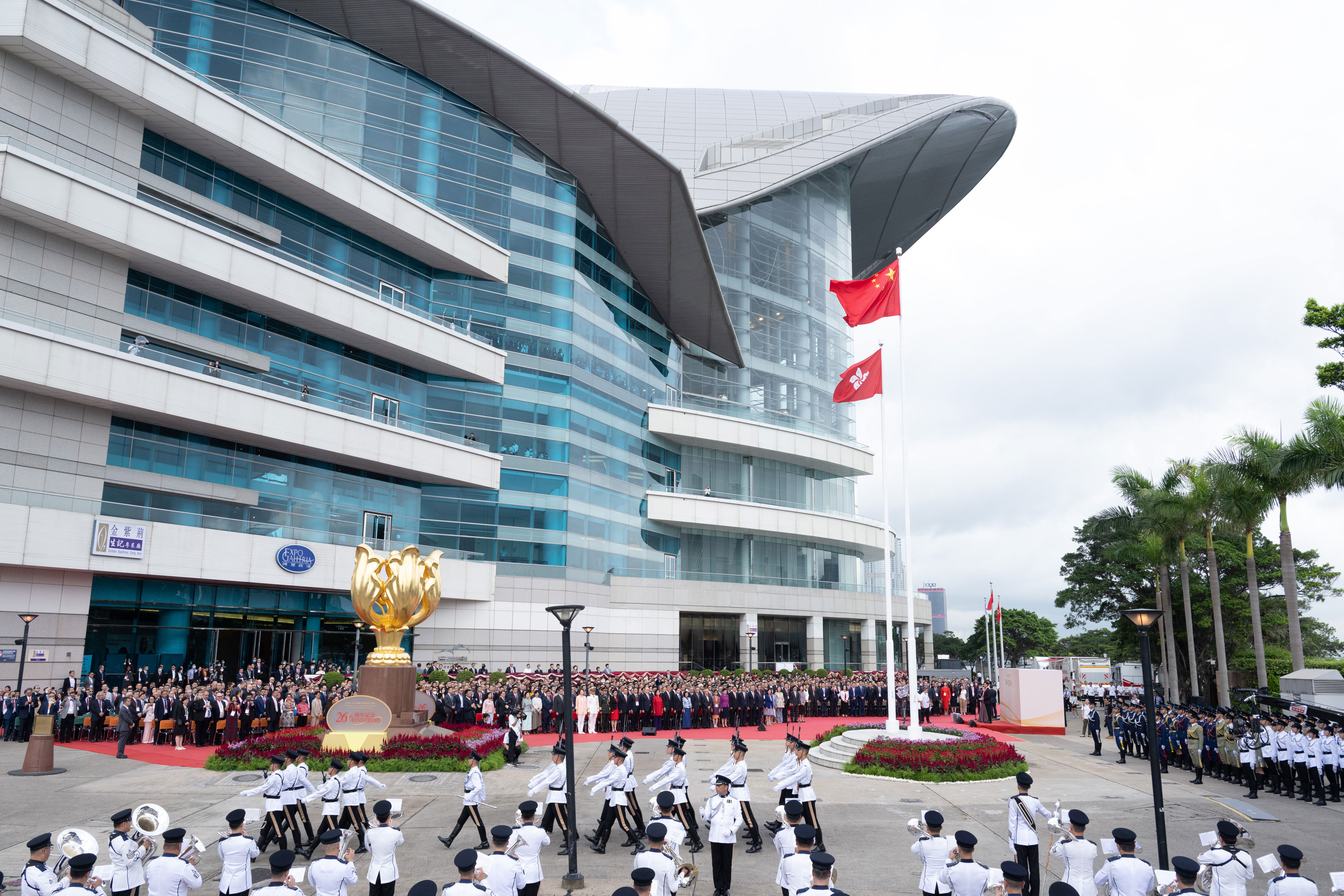 升旗儀式上午8時在灣仔香港會議展覽中心外的金紫荊廣場舉行。社會賢達及制服團隊成員會出席儀式,現場不會設立公眾觀禮區。升旗儀式中,警察樂隊將會奏樂;在歌唱家林俊和葉葆菁的領唱下,觀塘官立中學合唱團會獻唱國歌;特區政府紀律部隊會在空中和海上敬禮。