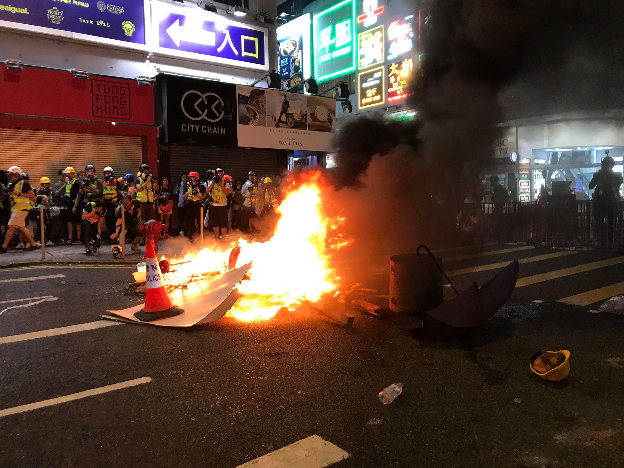 首頁港聞港聞 示威者波斯富街縱火 警方籲附近市民立即離開 作者:熱血編輯部 (陳五) 08-04-2019 Like Facebook Twitter 更多 Like180 分享0 留言0 大批在銅鑼灣鬧市堵路的激進示威者,於今晚(8月4日)近10時在波斯富街燃燒手推車上的垃圾筒和紙皮雜物,警方指嚴重威脅市民和在場人士的人身安全。因應現場情況,警方已於附近一帶施放催淚煙,驅散示威者。警方呼籲在場人士及附近街道的市民立即離開。警方對示威者一切暴力行為,予以嚴厲譴責。 消防員已經在10時許到場,將火救熄。
