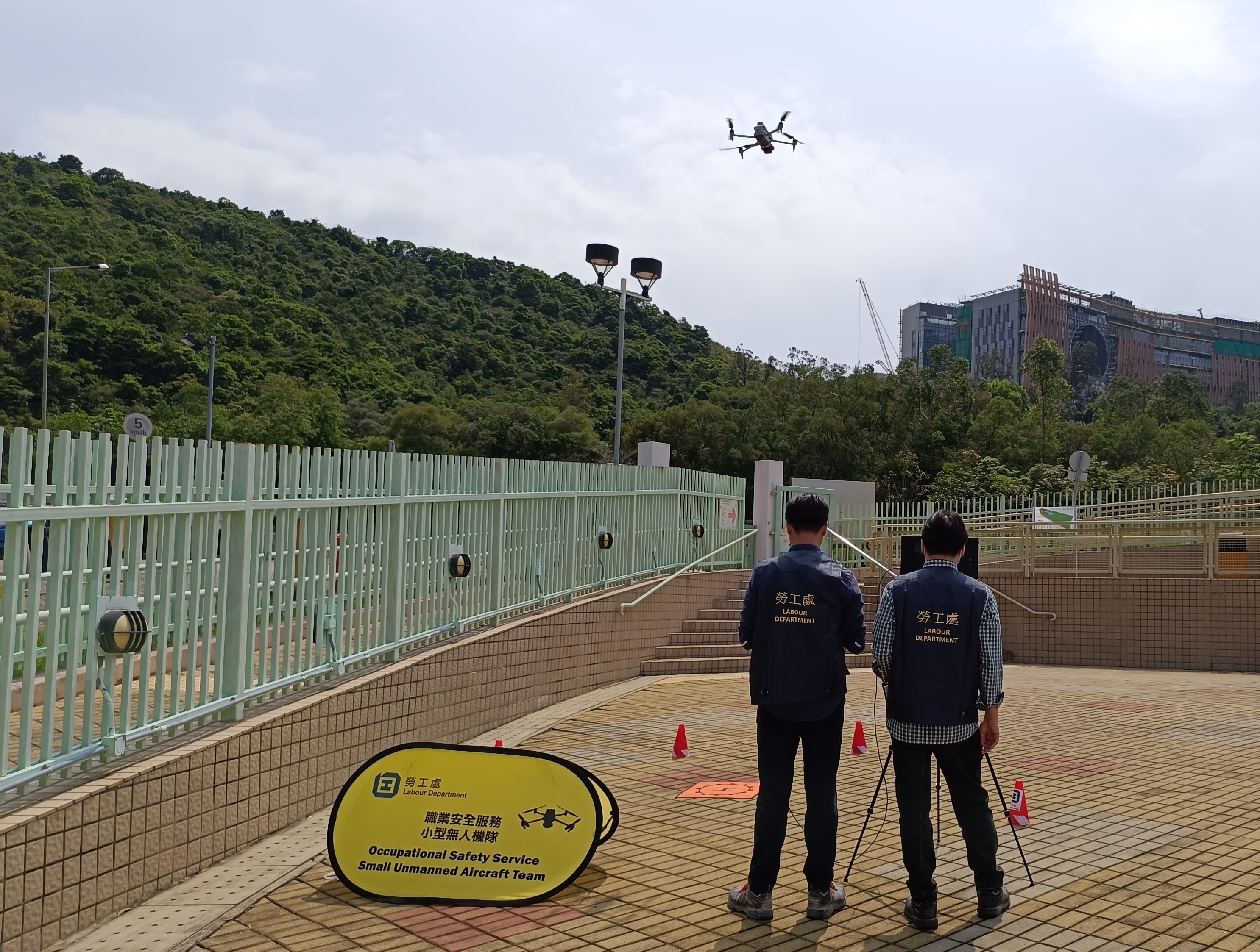 勞工處採用的無人機配備高倍率變焦高清攝錄鏡頭,從空中進行遙距拍攝及錄影,協助職安主任進行巡查及意外調查時蒐集證據。