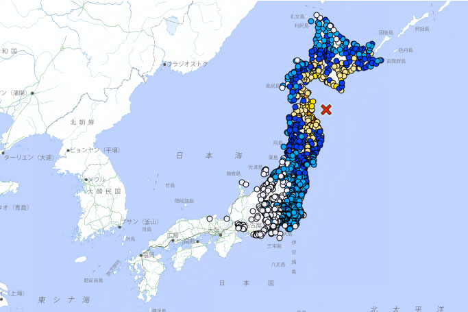 震度方面,青森縣八戶市錄得震度達「6強」。