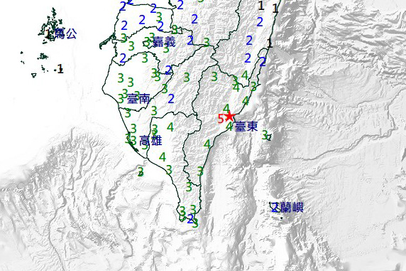 台東今午(12月24日)5時47分發生黎克特制6.1級地震。