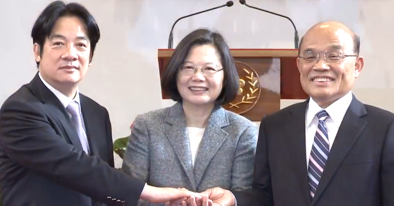 台灣總統蔡英文今日召開記者會,宣布委任前行政院長蘇貞昌接替賴清德,出任行政院長一職。
