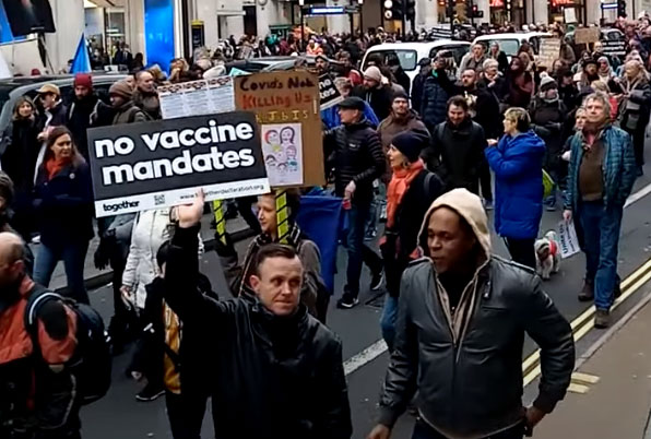 首頁港聞兩岸國際 英國有醫護示威 反對強制前線員工打針 作者:熱血編輯部 (陳五) 01-23-2022 Like Facebook Twitter 更多 Like751 分享0 留言0 歐洲多國都有示威,反對防疫限制措施。在英國,有民眾於周六(1月22日)上街,抗議政府防疫工作,當中有醫護集會,抗議當局強制國民保健署的前線員工接種疫苗,認為是侵害人身自由。在曼徹斯特及伯明翰等英格蘭大城市,亦有聲援醫護的活動。英國國民保健署就指,截至去年大除夕,已有超過9成醫護完成接種疫苗,仍未打針的7至8萬名醫護,最遲要在下月3日前打至少一針,4月1日前打齊兩針,否則會失去工作。(網上片段截圖)