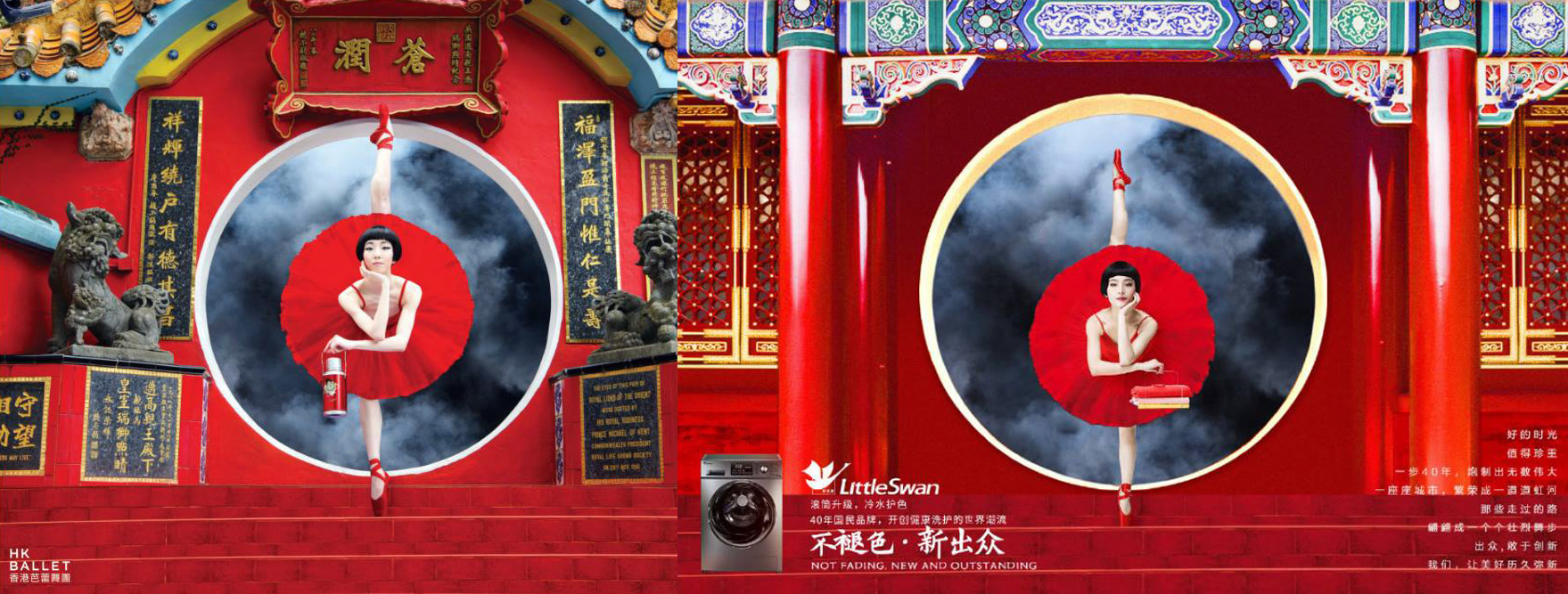 中國無錫小天鵝洗衣機公司日前在官方微博推出宣傳圖片,卻被發現與香港芭蕾舞團去年推出的「Never Stand Still」海報極度相似。小天鵝日前向香港芭蕾舞團發致歉信,聲稱已處罰相關工作人員,並已刪除照片。