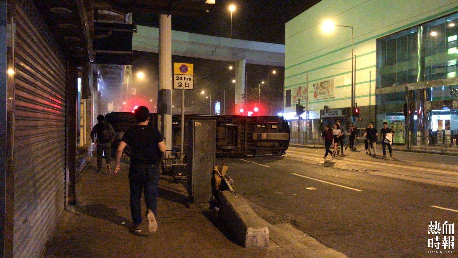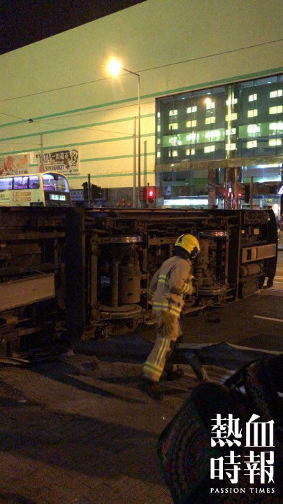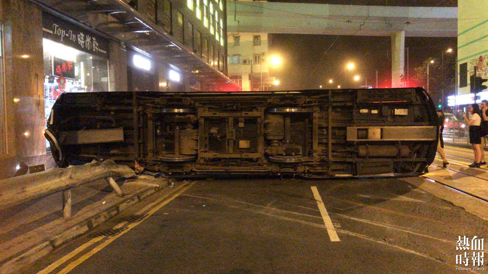 今晚(3月22日)近12時,一輛無載客的電車於西環翻側,司機腳部受傷。
