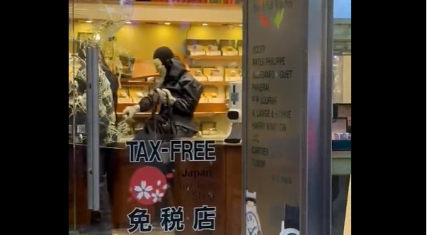 事發在周一(5月8日)傍晚,3名劫匪闖入錶行打爛飾櫃,搶去約100隻名錶,總值約1億日圓。劫匪在錶行搶劫約10分鐘後,登上接應車輛逃去。警方當晚在東京赤坂區拘捕4名疑犯。
