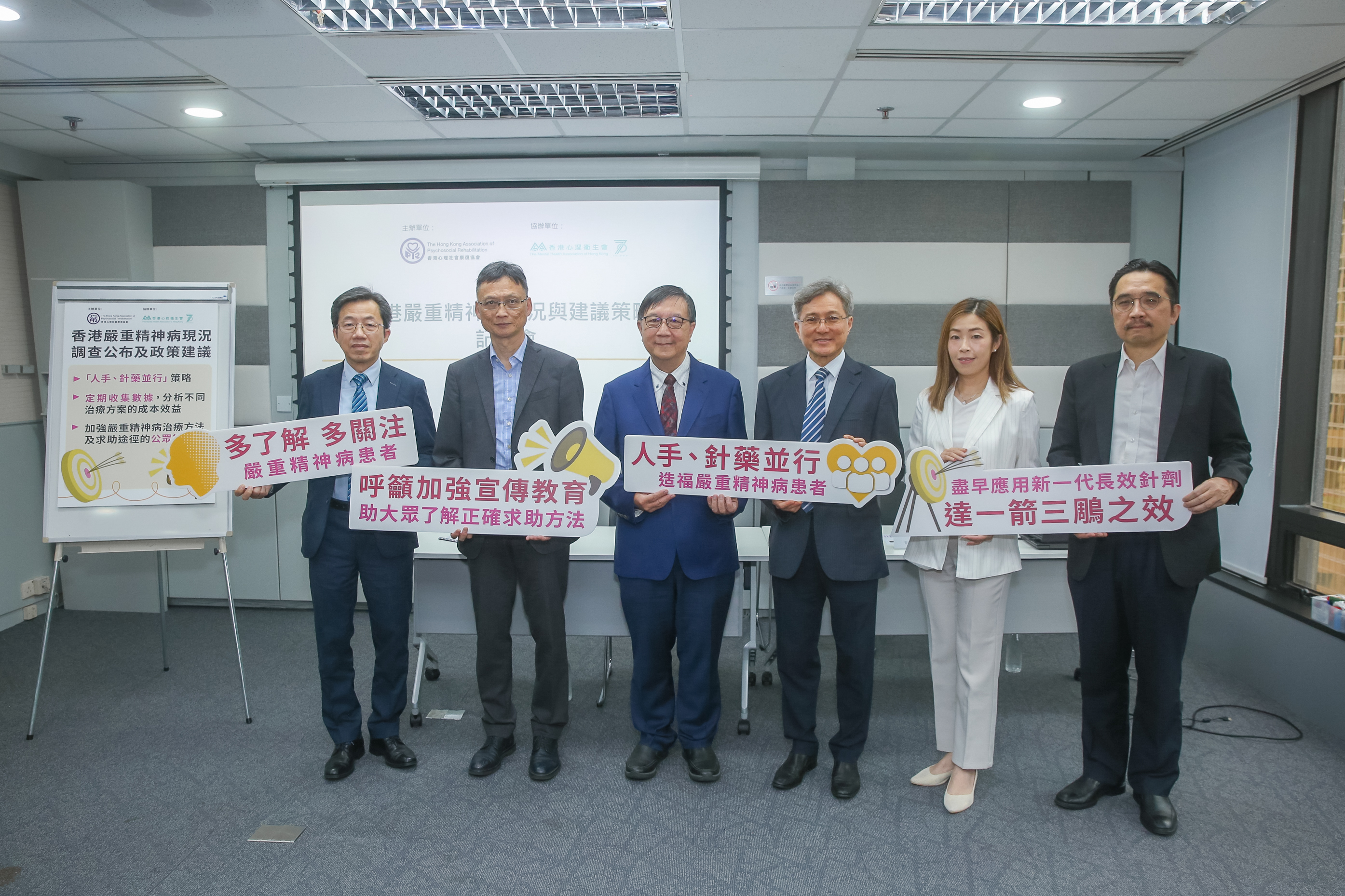 調查發現市民認知有明顯不足,不足9%的受訪者表示若自己或親友不幸患上嚴重精神病,他們了解求助及處理方法。協會倡議政府應採取「人手、針藥並行」策略、定期收集數據評估患者採用不同治療方案的成效及加強公眾教育。