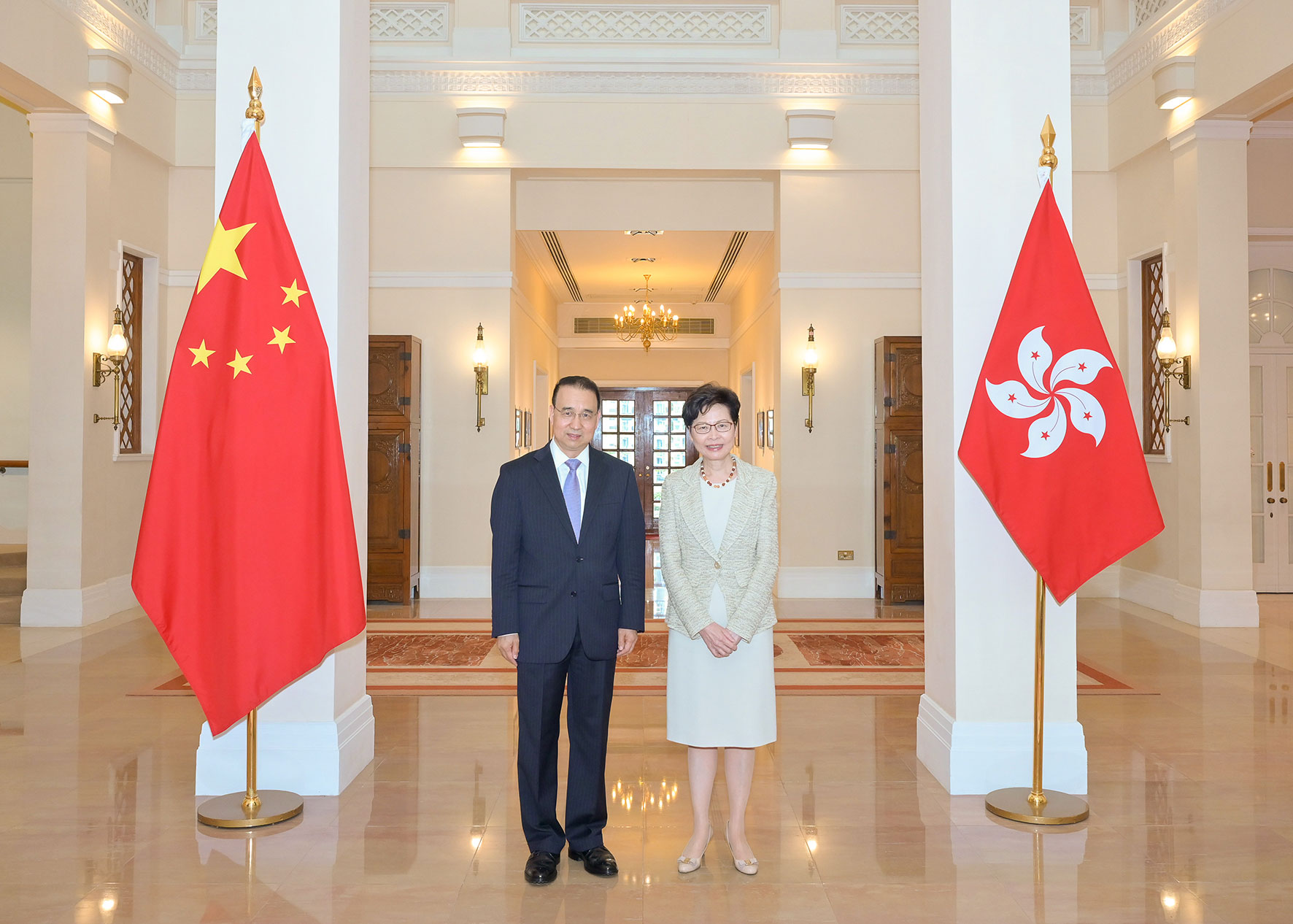 行政長官林鄭月娥今日(6月1日)下午在禮賓府,與新任外交部駐香港特別行政區特派員公署特派員劉光源會面。