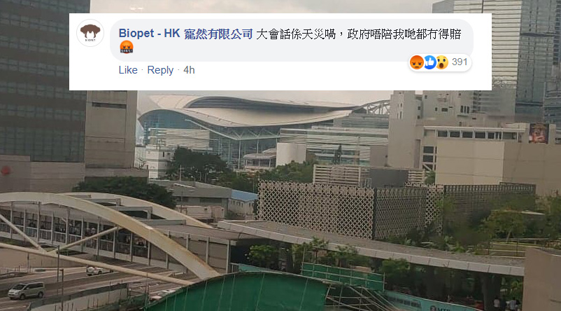 「Biopet - HK 寵然有限公司」於官方專頁接連出Post,炮轟今次決定,指參展商為了籌備寵物展,做了不少準備,現在時間心血完全付諸流水,批評政府「絕對唔使理你哋市民感受」,又指由於封路,根本就不能撤出商品,要到7月2日再返轉頭收拾殘局。