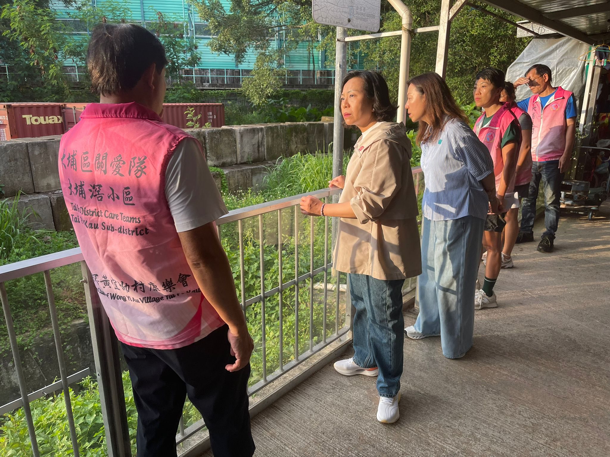 民政及青年事務局局長麥美娟今午(7月19日)前往多區視察預防水浸工作,包括觀塘鯉魚門、黃大仙中心外、沙田城門河、大埔墟市中心廣福道及富善街一帶,以及大埔滘美援新村等多個曾發生嚴重水浸個案的地點,提醒市民及商戶注意安全。