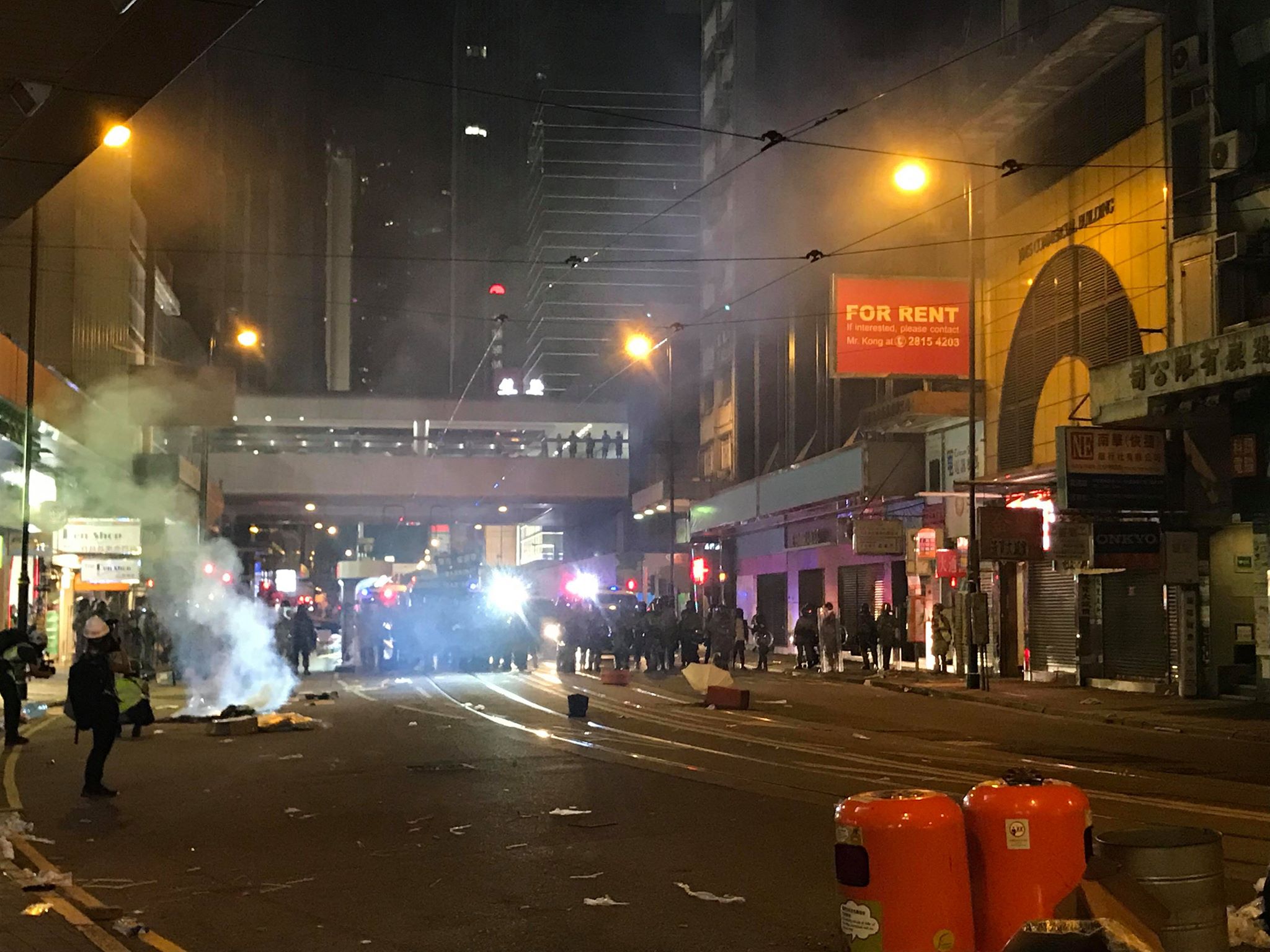 警方現正(7月28日)在港島區西面向東進行驅散行動,示威者在多處地方縱火。其中,有人在上環西港城附近,燃燒手推車上的紙皮...