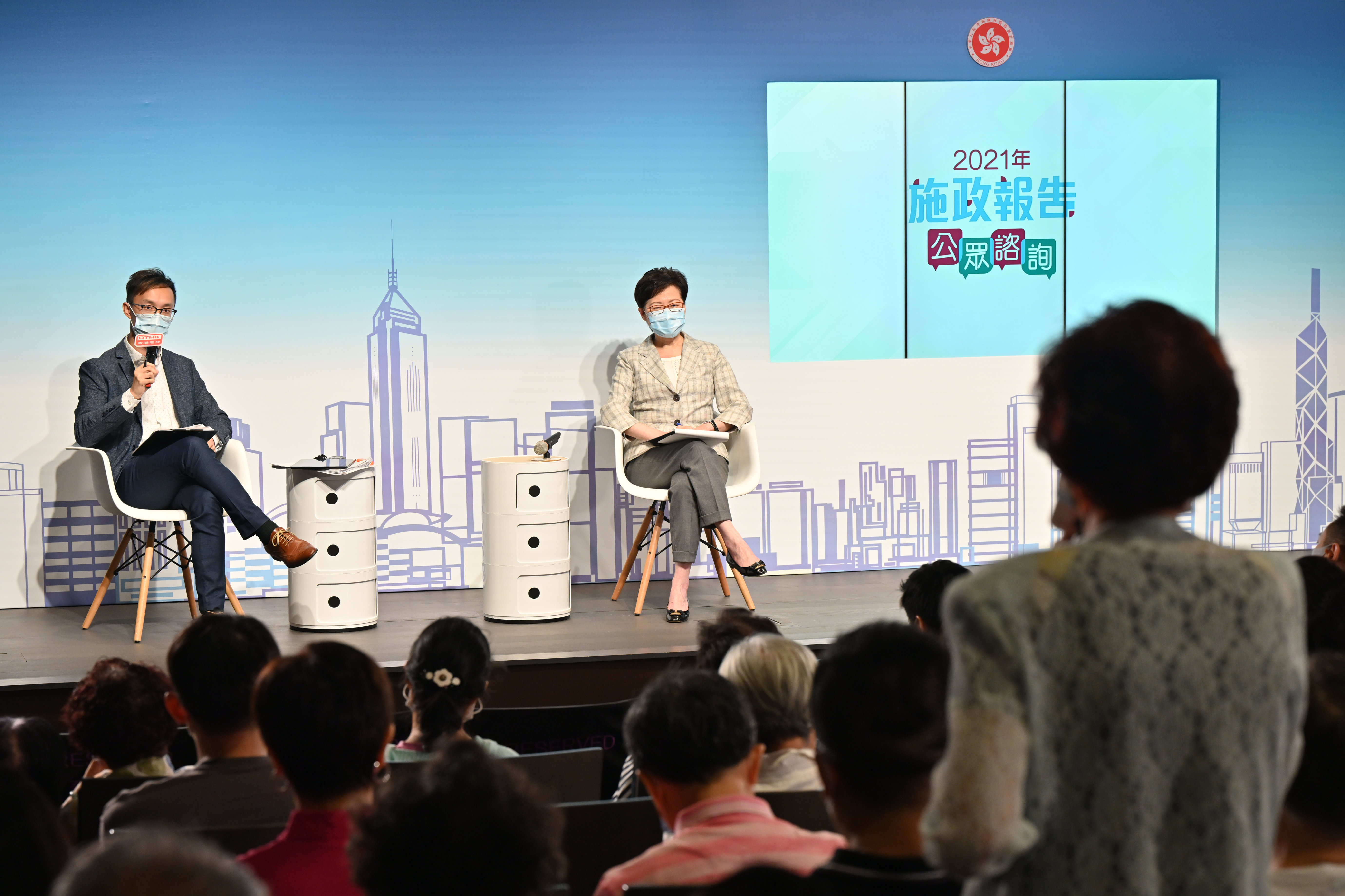 行政長官林鄭月娥今日(8月22日)到戲曲中心出席《2021年施政報告》公眾諮詢會,聽取市民對新一份《施政報告》的意見和建議。