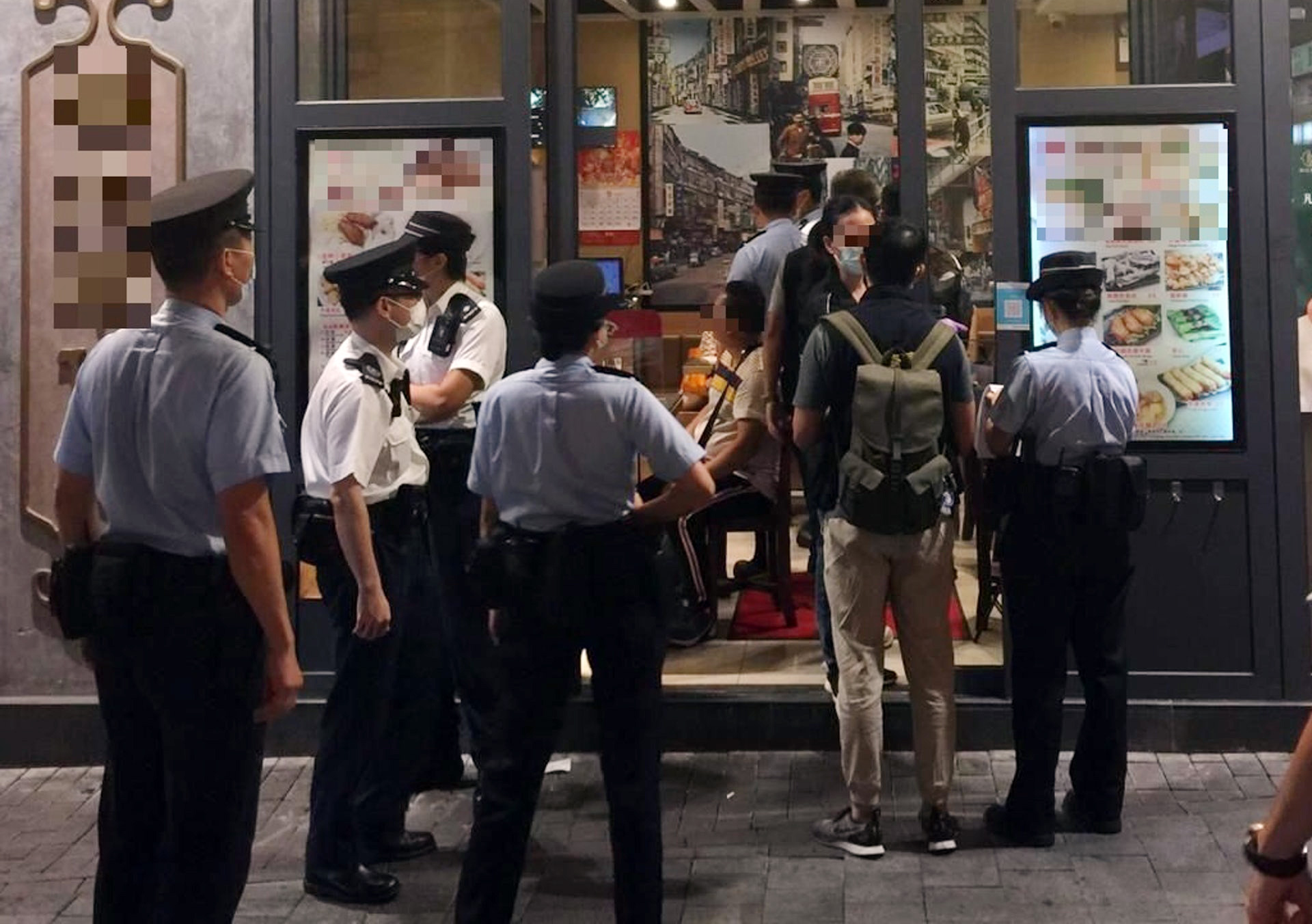 油麻地分區軍裝巡邏小隊昨日(9月10日)傍晚6時許,突擊巡查區內多間食肆,發現3間分別涉嫌沒有確保場內顧客使用手機掃描「安心出行」二維碼、填寫顧客資料紀錄表及沒有張貼告示列明運作模式。