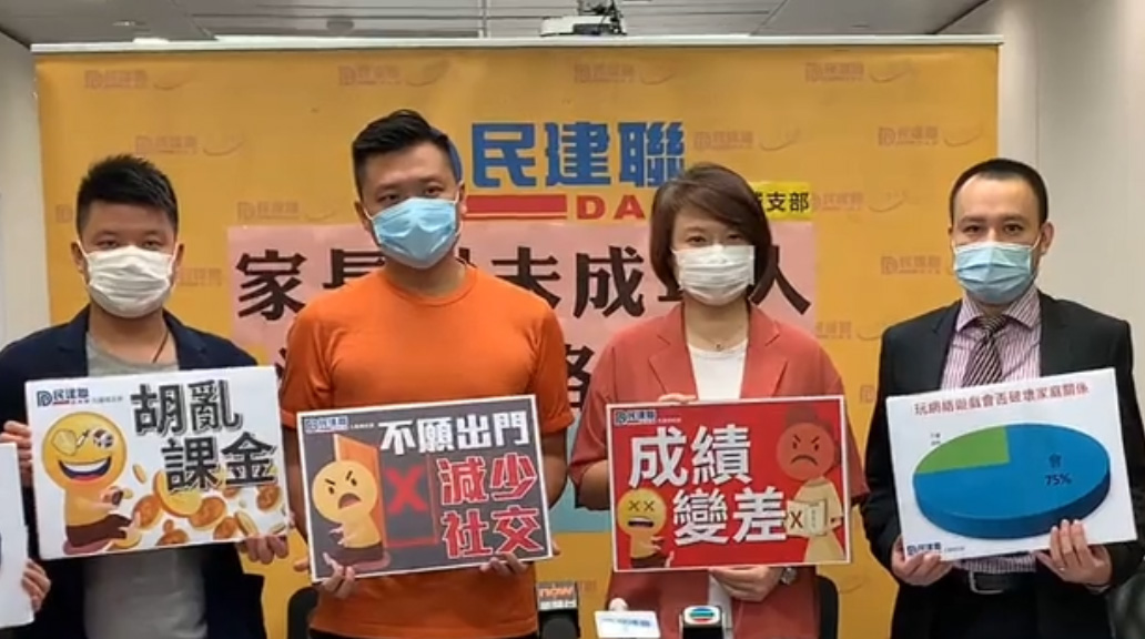 民建聯於今年9月6日至10日,以網上問卷訪問463名中小學生的家長,調查未成年學生玩網絡遊戲的情況,調查發現,逾三分一家長稱子女每日花3至5小時玩網絡遊戲,逾18%更每日花5小時以上。受訪家長認為,網絡遊戲會令子女成績變差、影響健康及家庭關係。