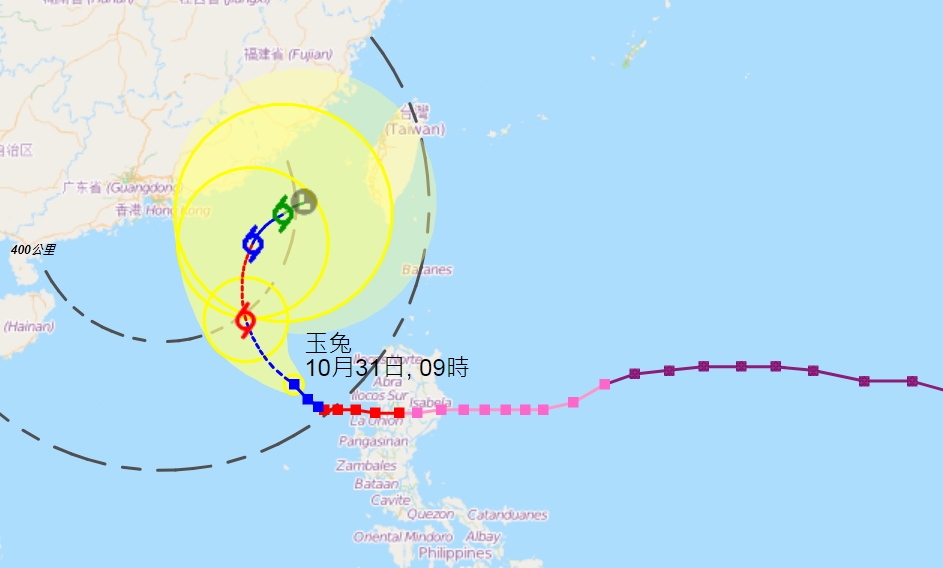 一號戒備信號在今早(10月31日)8時40分發出,「玉兔」已減弱為強烈熱帶風暴。