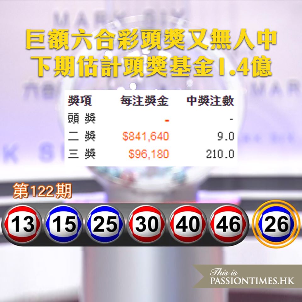 下期六合彩延至下周四(11月7日)攪珠,估計頭獎基金達1.4億元。