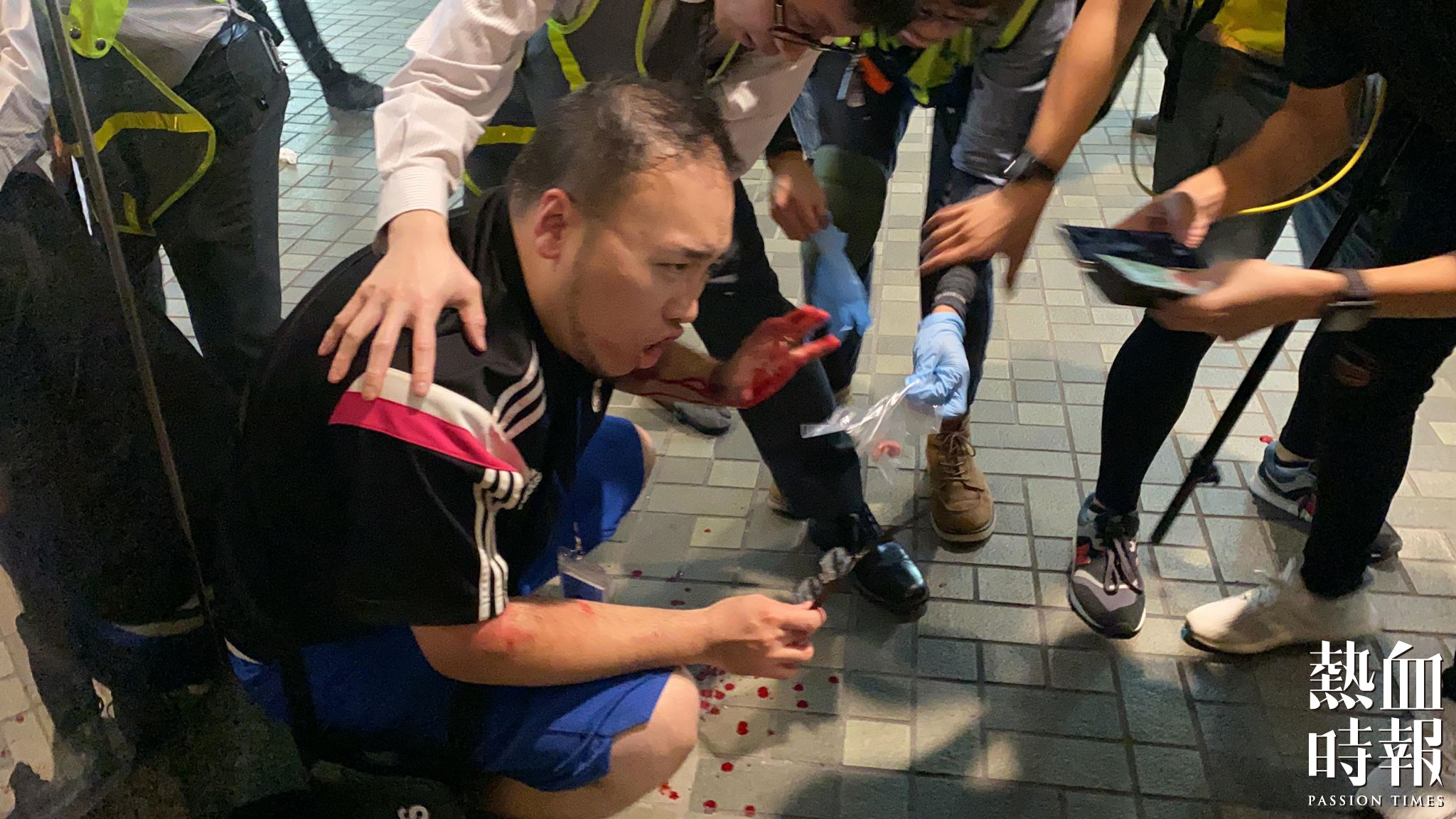 事發於今晚(11月3日)7時許,現場消息指,有人因與一名身穿灰色上衣的男子,因政見問題口角,期間灰衣男亮刀施襲,其中一人背部受傷。