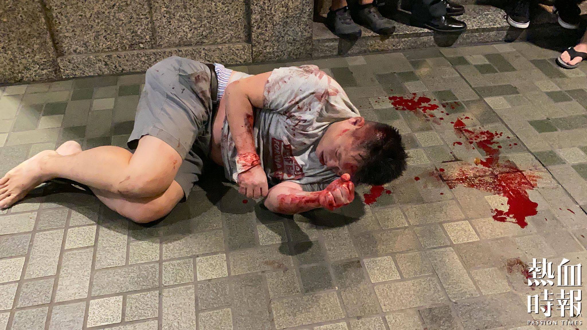 當時趙家賢嘗試制伏灰衣男,豈料糾纏期間被對方咬去左耳一部分,滿地鮮血。至於灰衣男則被現場人士私了,血流披面。
