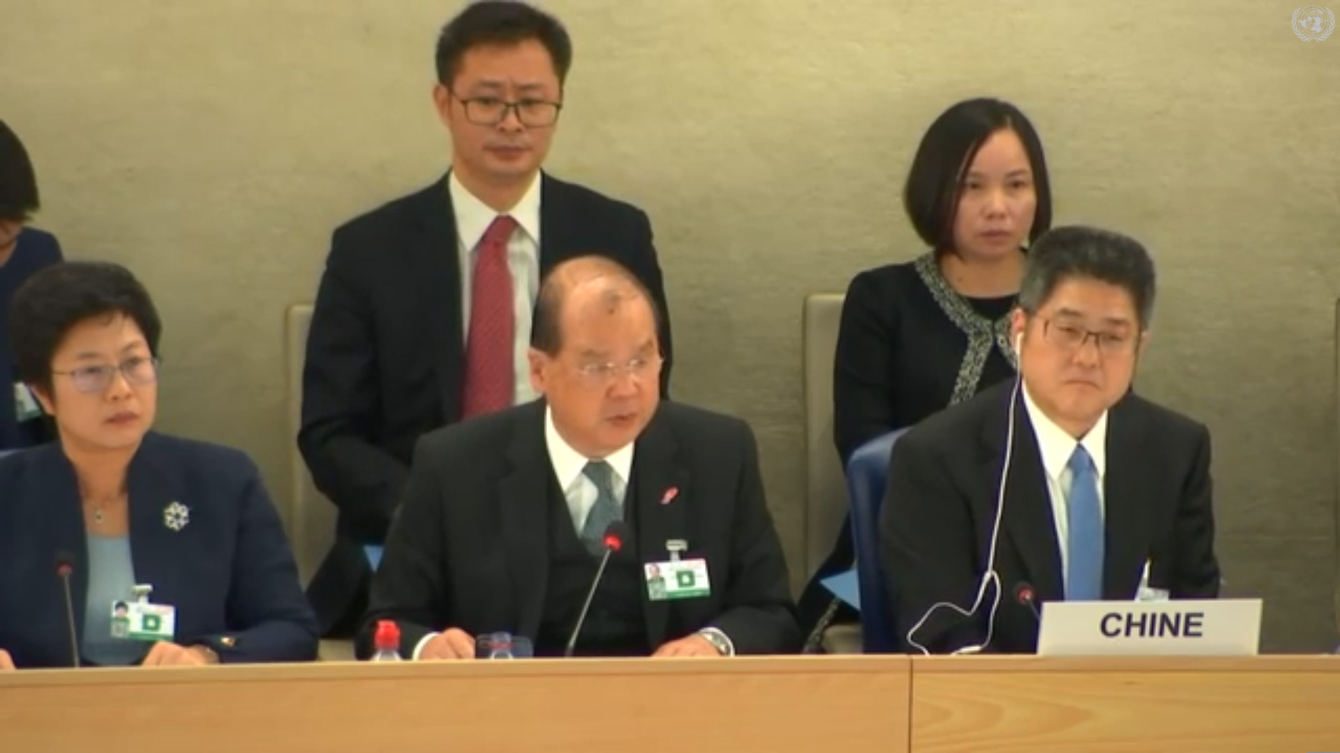 政務司司長張建宗今日(11月6日)於瑞士日內瓦,出席聯合國人權理事會按照普遍定期審議機制舉行的會議,他在會議時發言,他指近期對香港一些人權狀況的關注,是不必要、毫無根據、不成立的,是出於誤解和對香港真實情況缺乏了解所致。