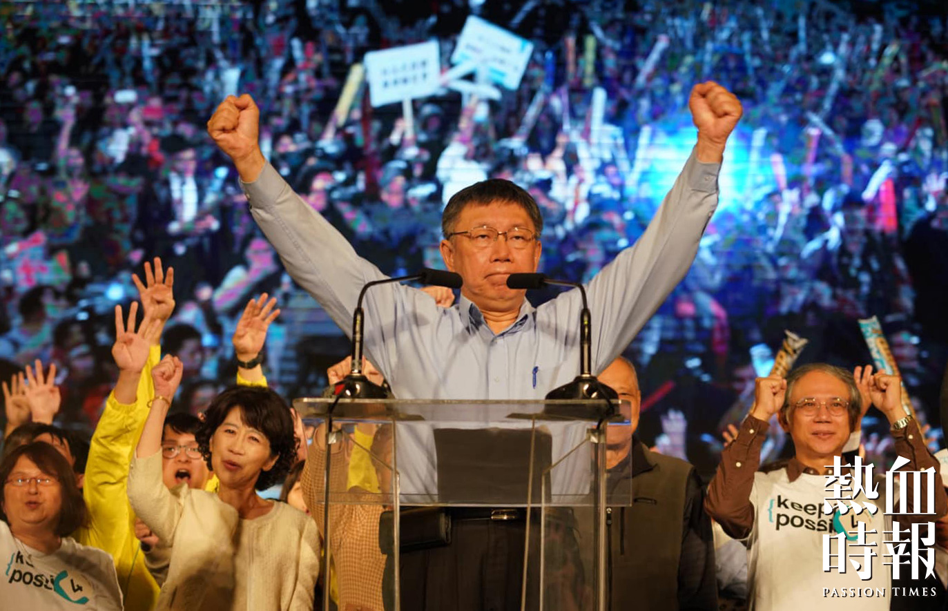 【台灣九合一選舉前夕最後拉票 柯文哲造勢晚會8萬人撐場】 台灣九合一選舉明日(11月24日)舉行,角逐連任台北市長的柯文哲,今晚在四四南村舉行最後一場造勢晚會,大會報稱有8萬人出席。 柯文哲約在晚上9時許現身晚會,縱使之前曾經有人高舉標...