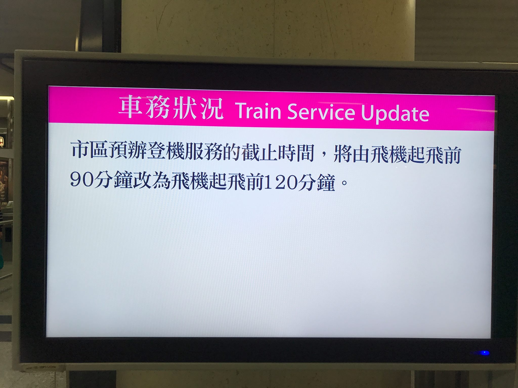 此外,市區預辦登機服務的截止時間,亦一度由飛機起飛前的90分鐘,改為飛機起飛前的120分鐘。