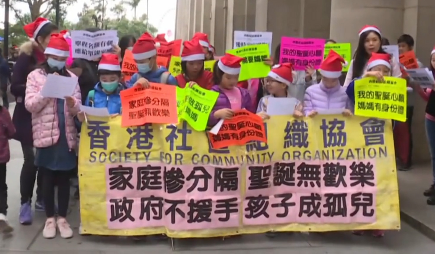 社區組織協會幹事施麗珊、中港分離單親家庭關注會成員,以及數十名兒童及單親家長,由皇后像廣場遊行到禮賓府。遊行人士手持標語,印上「單程名額有剩,應給單親家庭」、「家庭慘分隔、聖誕無歡樂」、「我的聖誕心願,媽媽有身份證」。