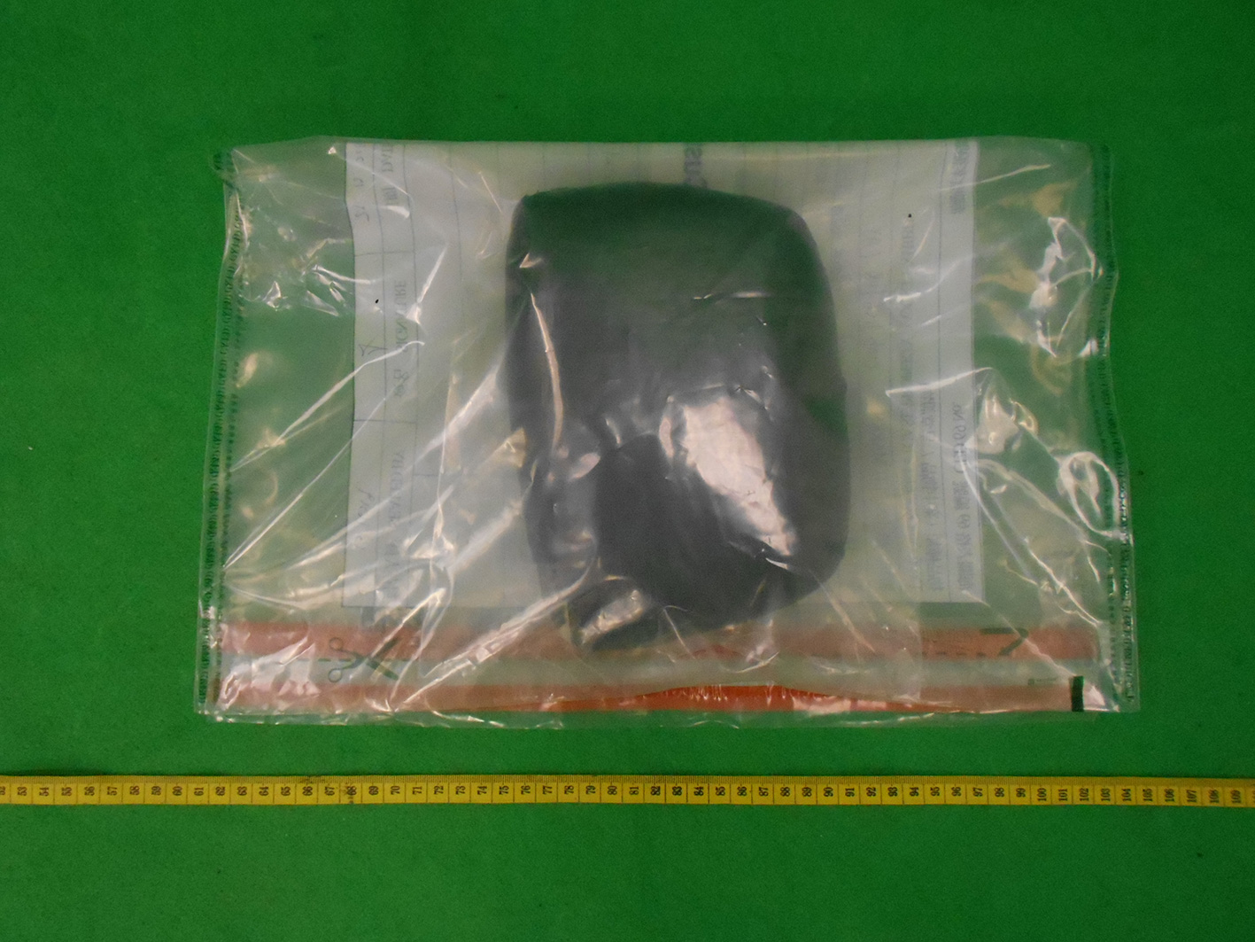 一名41歲女旅客昨日上午從南非約翰內斯堡飛抵本港,海關人員進行清關時,檢獲一包綑綁在其身上,約重1.35公斤的懷疑可卡因。