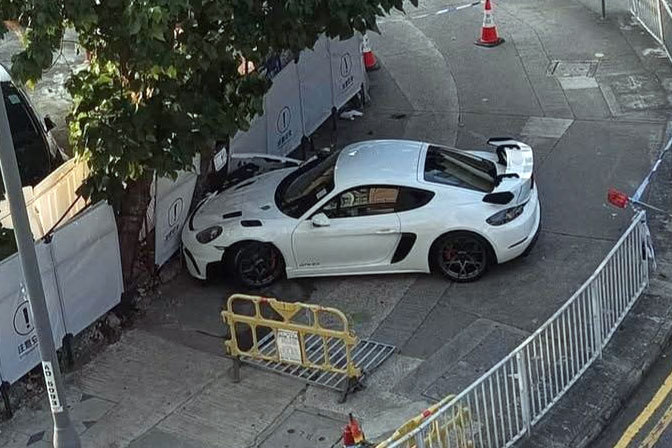 元朗今午(12月27日)發生交通意外,一名休班男警駕駛一輛保時捷跑車失事剷上行人路,撞傷兩人。