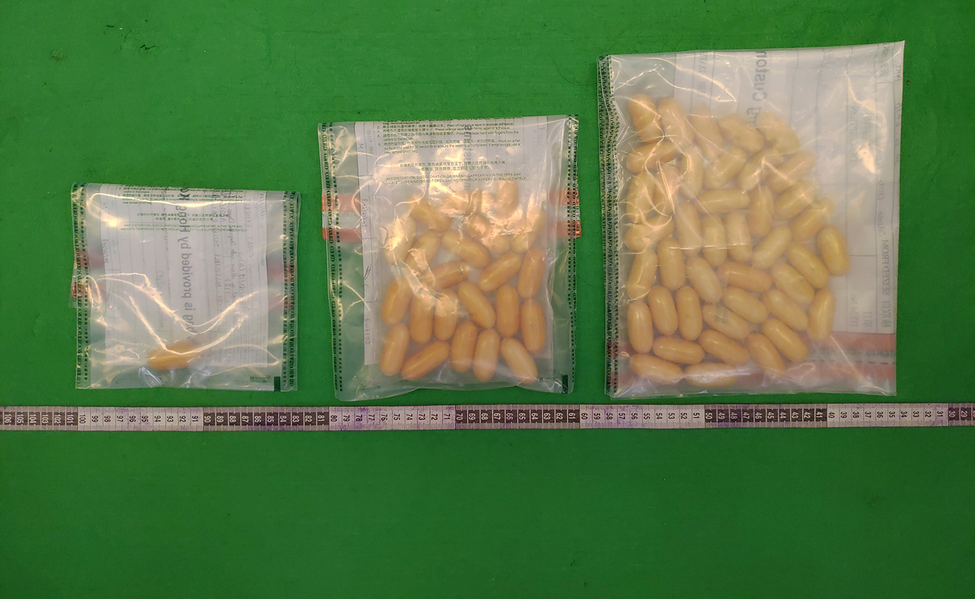 另外,一名28歲男旅客昨日從巴西聖保羅經阿拉伯聯合酋長國迪拜飛抵本港。海關人員進行清關期間,該名男子從體內排出一粒懷疑可卡因,他因此被捕。該名男子其後再從體內排出約800克懷疑可卡因,案件仍在調查中。