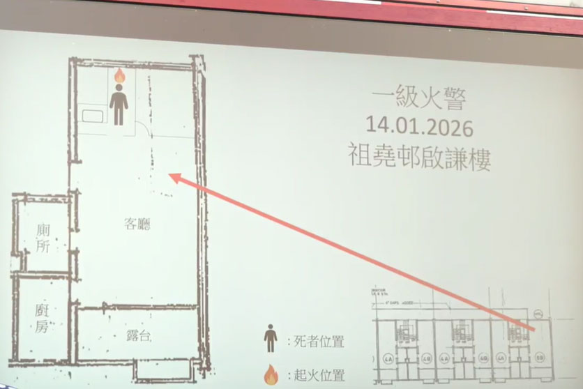 消防今日(1月14日)中午12時41分接報,5分鐘後到達現場,10分鐘後將火救熄,並在單位睡房救出一名昏迷的男子,送院後證實不治。