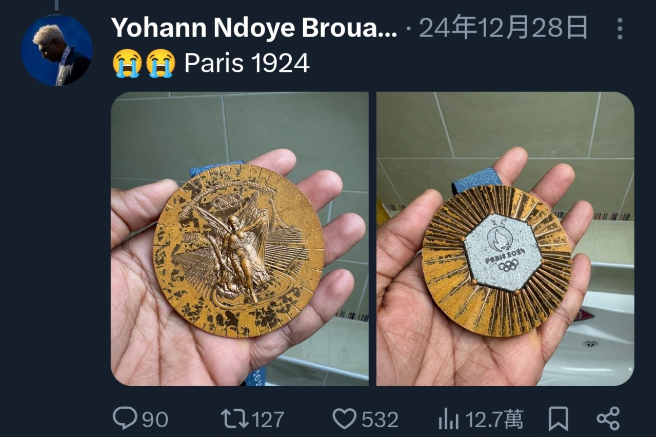 去年巴黎奧運的獎牌品質問題,近日再度引起關注,兩名法國選手在社交媒體上分享了其所獲獎牌的現況照片,獎牌表面出現塗層剝落和變色,國際奧委會表示,將更換所有受損的獎牌。