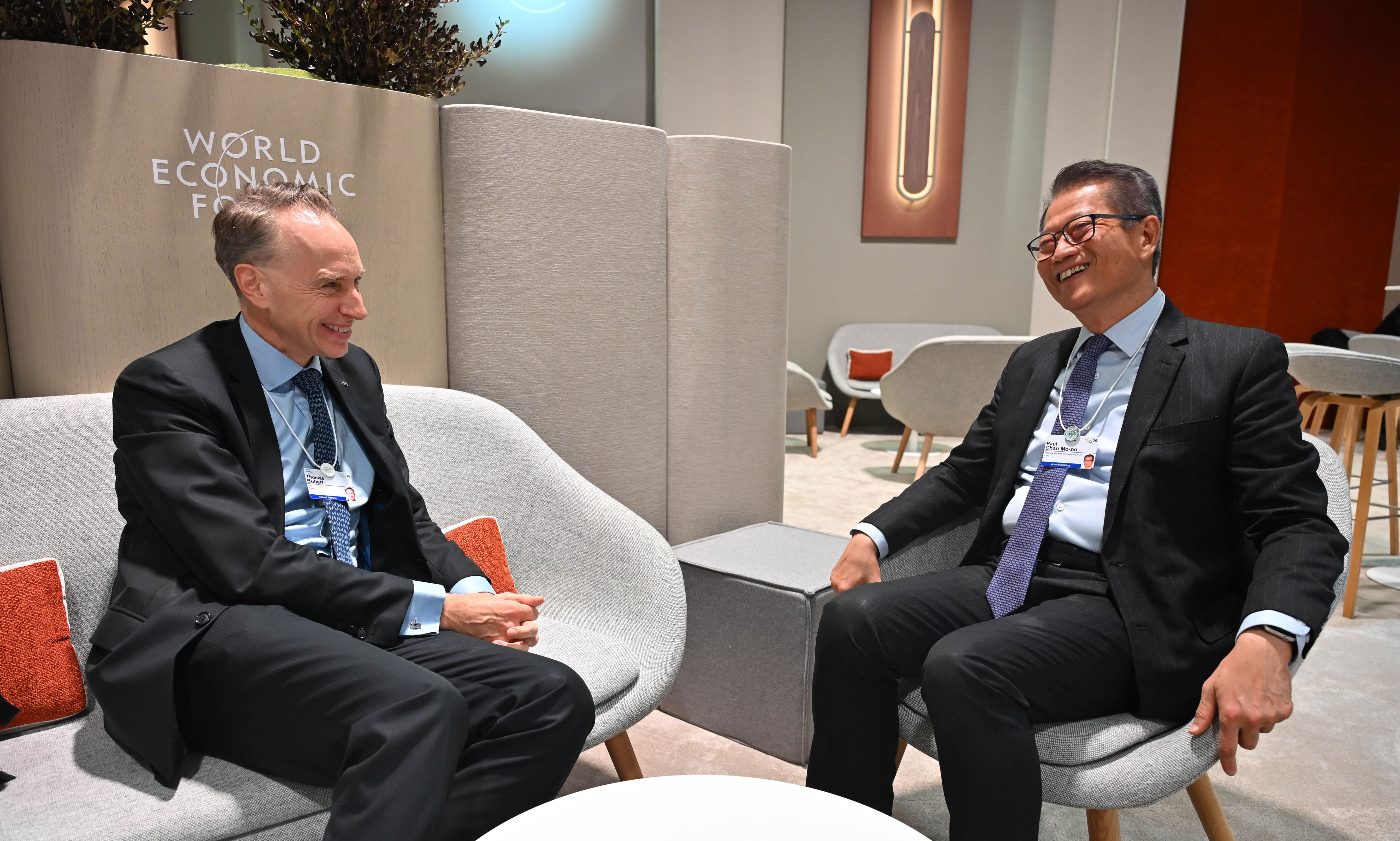 財政司司長陳茂波周四(1月22日)繼續在瑞士達沃斯參與世界經濟論壇年會的活動,出席專題會議,並與各地政商及國際組織領袖會面。