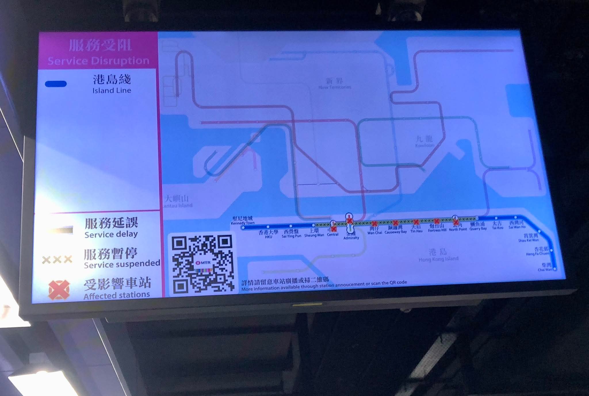 港島綫服務今日清晨(2月11日)6時起受到影響,上環站至鰂魚涌站列車一度需暫停服務1小時。