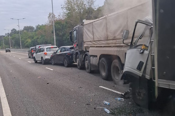 事發於上午7時24分,一名49歲男子駕駛一輛私家車沿元朗公路往上水方向行駛。當駛至近十八鄉交匯處時,該私家車司機因應交通情況收慢及停下車輛,惟後方3輛私家車、2輛輕型貨車及1輛重型貨車懷疑收掣不及、連環相撞。其中一名49歲男司機駕駛的輕型貨車撞向該輛重型貨車車尾。