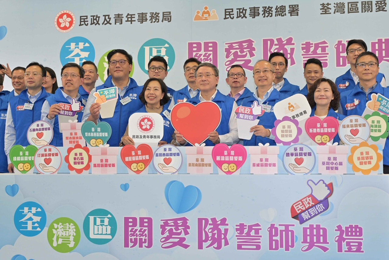 荃灣區「地區服務及關愛隊伍」(「關愛隊」)今日(5月5日)正式起動,政務司副司長卓永興和民政及青年事務局局長麥美娟主持誓師典禮。