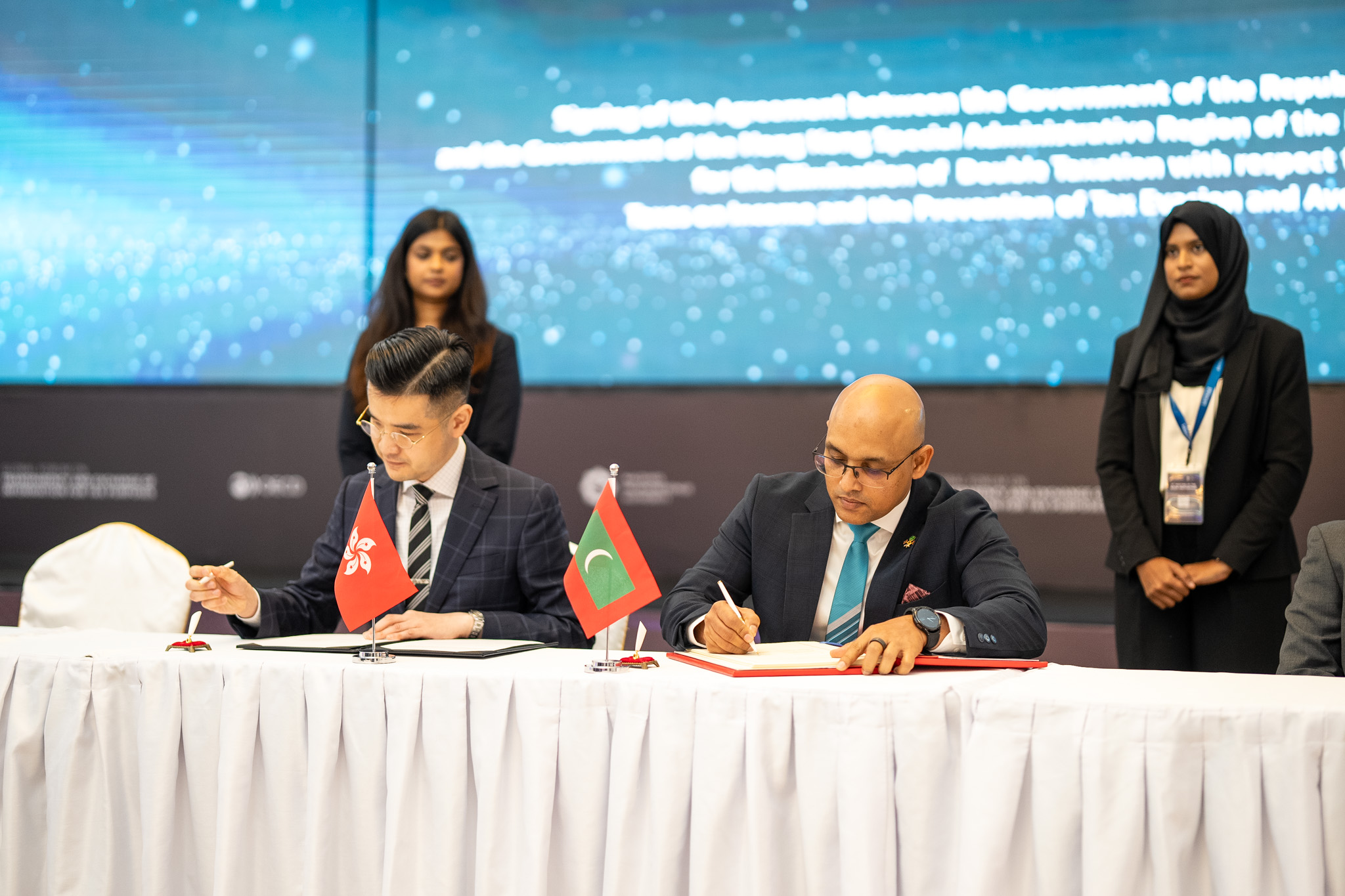 香港今日(5月26日)與馬爾代夫在當地簽署全面避免雙重課稅協定。該全面協定闡明香港和馬爾代夫雙方的徵稅權,有助投資者更有效評估其跨境經濟活動的潛在稅務負擔。