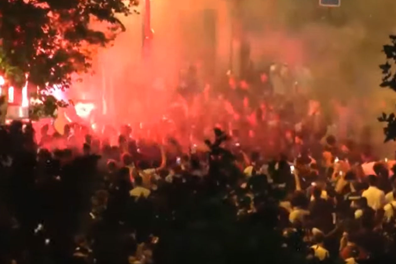 在數以千計球迷走上巴黎香榭麗舍大道之際,有人破壞巴士站,亦有人向防暴警察扔東西,警方則施放催淚彈及水炮驅散。